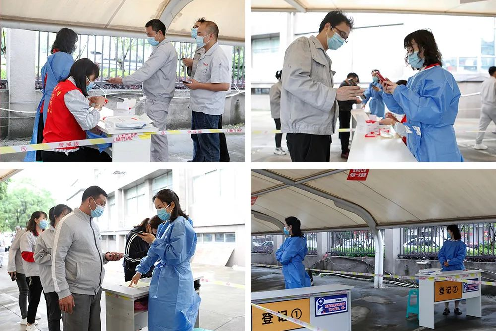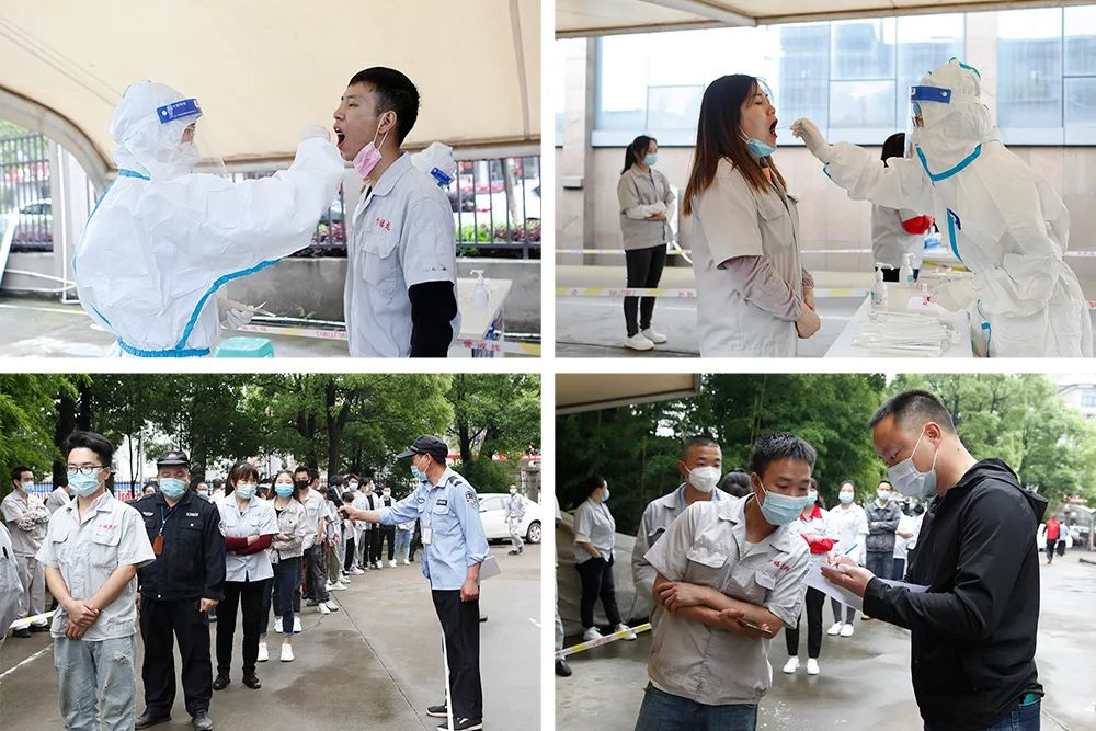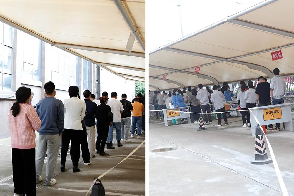 為方便檢測的同時盡最大努力減低員工被感染的風險,公司共設置兩處監測點,要求各事業部人員分時段檢測,參檢人員按照事業部劃分批次,有序排隊進行,大家自覺佩戴口罩,保持一米距離,積極配合醫護人員完成采樣。