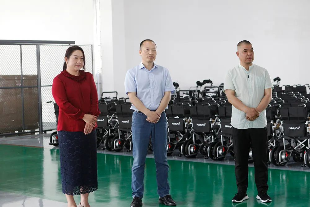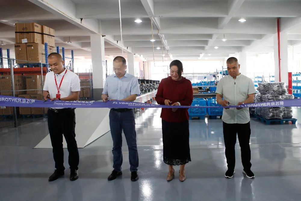 剪彩儀式上,集團董事長姚湘江、集團總裁徐春華、集團黨支部書記胡仲、醫療器械事業部常務副總施李剛共同為新車間開工啟動剪彩。隨后董事長和總裁一起按下流水線啟動鍵,千喜車業第20萬輛電動輪椅車正式下線!