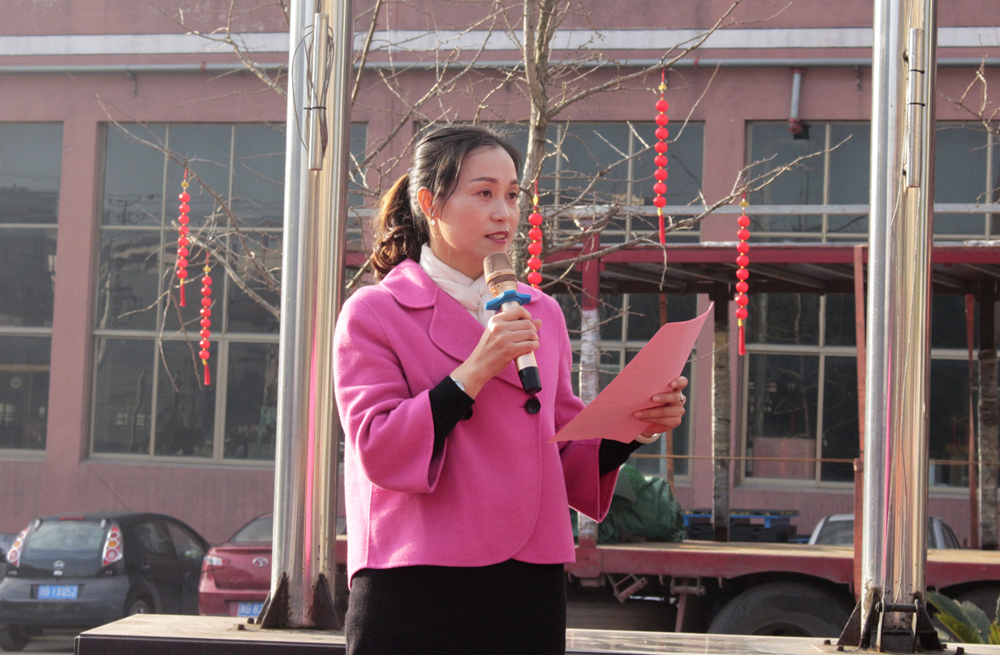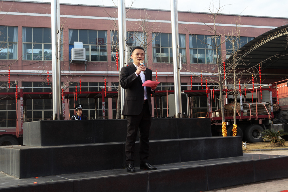 首先,進(jìn)行的是升國旗儀式。當(dāng)雄壯激昂的國歌奏響時(shí),五星紅旗徐徐升起、迎風(fēng)飄揚(yáng),全體人員莊嚴(yán)地向國旗行注目禮。禮畢后,千禧龍纖事業(yè)部總經(jīng)理陳宏則作為各事業(yè)部總經(jīng)理的代表,上臺發(fā)表致辭。致辭中,陳宏總結(jié)了2019年度千喜集團(tuán)各事業(yè)部取得的成就與收獲,肯定了全體人員的辛勤付出和努力,并對大家的付出表示衷心感謝。同時(shí),對于2020年度的多個(gè)“小目標(biāo)”,他也許下了自己的期許,希望在全體人員的努力下,各事業(yè)部都能在各自的行業(yè)中熠熠發(fā)光,不斷朝著既定的目標(biāo),努力前進(jìn),實(shí)現(xiàn)千喜集團(tuán)的價(jià)值,實(shí)現(xiàn)千喜人的價(jià)值。