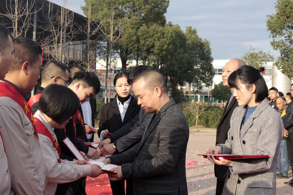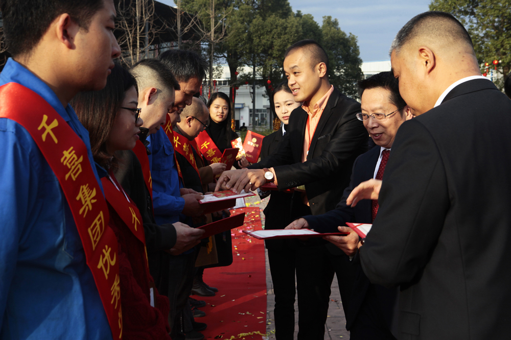 隨后,進(jìn)行了2019年度優(yōu)秀員工和黨員的表彰儀式,各事業(yè)部共有41位人員和1位黨員獲得了優(yōu)秀員工和優(yōu)秀黨員的榮譽(yù)稱號。各事業(yè)部優(yōu)秀員工依次上臺,由總經(jīng)理代表集團(tuán)為他們授予榮譽(yù)證書及獎(jiǎng)勵(lì)。當(dāng)一份份沉甸甸的證書交到他們手上時(shí),便是對他們努力工作的最大肯定和褒獎(jiǎng),也希望未來他們能帶著千喜人的精神繼續(xù)前行,不斷挑戰(zhàn),不斷超越。同時(shí),集團(tuán)辦公室韋偉作為優(yōu)秀員工代表上臺發(fā)言:感謝公司提供的平臺,讓她能夠在工作中實(shí)現(xiàn)自我價(jià)值,同時(shí),也感謝千喜這個(gè)大家庭,讓她在緊張的工作之余體會(huì)到了家的溫暖和親友般真摯的情誼。未來,依然會(huì)在自己的崗位上發(fā)光發(fā)熱,為千喜集團(tuán)的發(fā)展貢獻(xiàn)自己的力量。