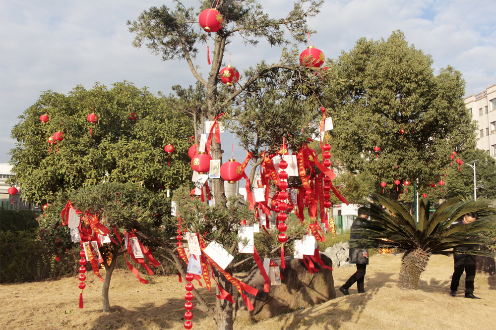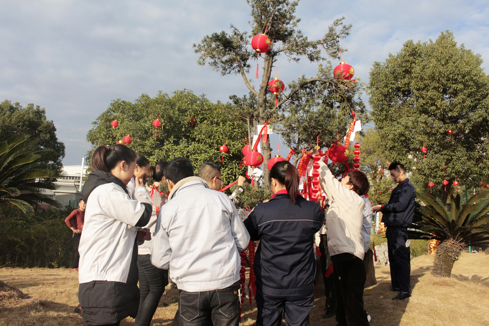 之后,主持人再次邀請各事業(yè)部的總經(jīng)理登臺,由他們分別寫下2020年的第一份心愿,許下對未來的美好愿景,并親自將自己寫的心愿卡掛到廠區(qū)的“心愿樹”上。在他們的引領(lǐng)下,全體在場人員紛紛移動(dòng)到廣場上的“心愿區(qū)”,在擺放了各式各樣心愿卡的桌臺旁,大家仔細(xì)的挑選著中意的卡片,一筆一劃寫下自己的心愿,然后鄭重其事的走到心愿樹前,將自己的心愿卡掛在高高的枝丫上,很快,一張張小小的心愿卡,便凝結(jié)成了一棵盛開著許許多多心愿的大樹,乘著微風(fēng)飄揚(yáng)著。 隨著心愿樹上的心愿卡越來越“茂盛”,掛好心愿卡的人員便來到了“禮品區(qū)”。在這里,各個(gè)事業(yè)部負(fù)責(zé)發(fā)放春節(jié)禮品的工作人員,已經(jīng)早早的守候在此了,看著他們一張張熟悉的臉龐,熟練地將禮品一一發(fā)到大家的手中,共同分享新年的喜悅與期盼。