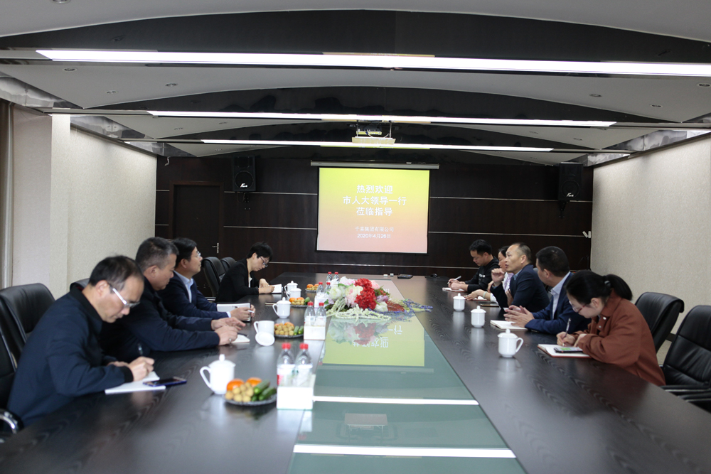 4月26日,永康市人大副主任祝鴻熙、市人大教科文衛委主任胡建華、永康市科技局副局長徐航等一行蒞臨千喜集團開展科技創新工作的視察調研。由開發區黨工委委員黃蘆壹、集團董事長姚湘江等陪同參與調研。
